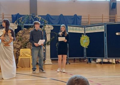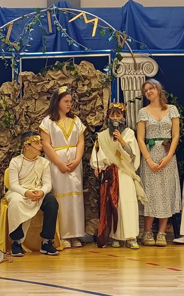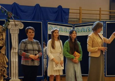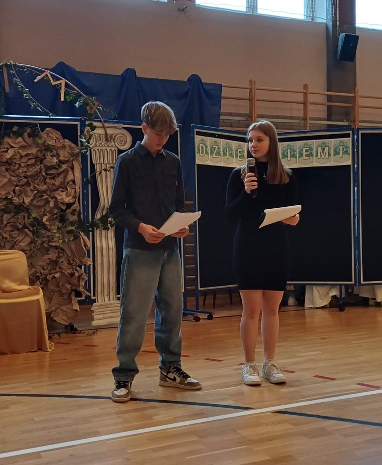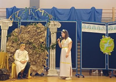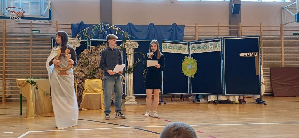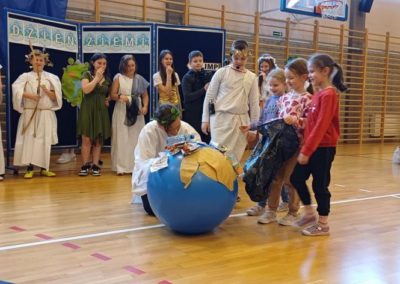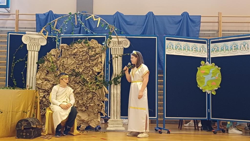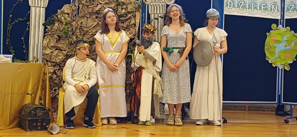 Dnia 24 kwietnia w naszej szkole odbyła się uroczysta akademia z okazji Światowego Dnia Ziemi. Uczniowie klasy V i VII przygotowali pod kierunkiem pani Beaty Jóźwiak przedstawienie teatralne pt. „Olimpijski niepokój” oraz wyreżyserowali film pt. „Dzień Ziemi”. Przepiękna dekoracja oraz stroje aktorów odzwierciedlały bogów Olimpu. Publiczność była zachwycona. Na zakończenie akademii pani Dyrektor Ewa Świderska nagrodziła laureatów konkursów szkolnych: „Na najlepsze wiosenne nakrycie głowy”, Turniej tenisa stołowego, „Odnawialne źródła energii”, „Literacki list otwarty w obronie Ziemi”. Gratulujemy zwycięzcom i dziękujemy wszystkim uczestnikom za aktywny udział.