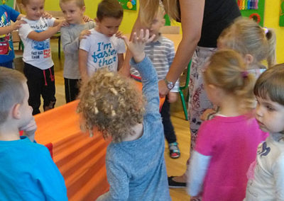 Z tej okazji w naszym przedszkolu zorganizowane zostały gry i zabawy dla dzieci. Dzieci uczestniczyły we wspólnej zabawie, konkursach i grach zespołowych. Nie zabrakło uśmiechu i radości oraz słodkiego poczęstunku. Było wesoło i kolorowo. Przedszkolaki przypomniały sobie również o swoich prawach – tak ważnych w życiu każdego człowieka – a także o obowiązkach, czyli kodeksie dobrego zachowania się. Na zakończenie panie złożyły dzieciom życzenia i wręczyły każdemu odznakę Super Przedszkolaka i kolorowy balonik.