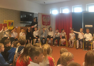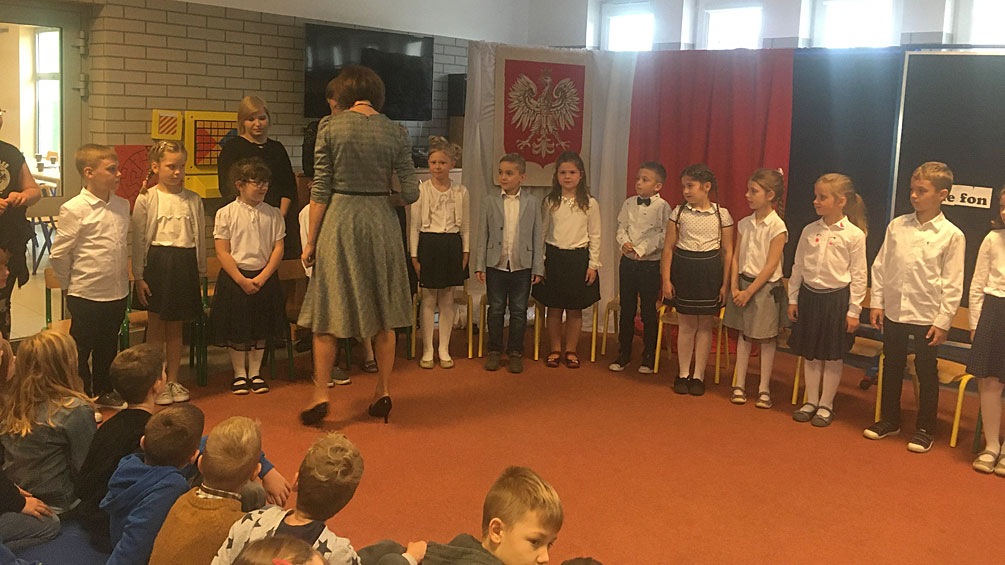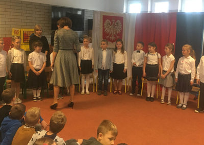 Dnia 4 listopada w naszej szkole od samego rana panowała świąteczna atmosfera. Uczniowie klasy I wraz z wychowawczynią odświętnie ubrani zebrali się w sali świetlicy szkolnej.