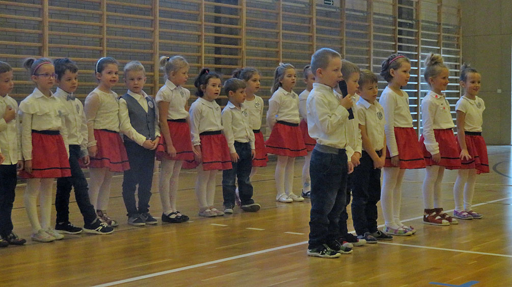 Dnia 8.11.2018r., podczas Apelu z okazji 100. rocznicy odzyskania przez Polskę niepodległości przedszkolaki zaprezentowały przepiękny program artystyczny – były wiersze, piosenki, no i tańce, które możecie obejrzeć poniżej. Program przygotowały panie wychowawczynie wspólnie z panem od rytmiki.