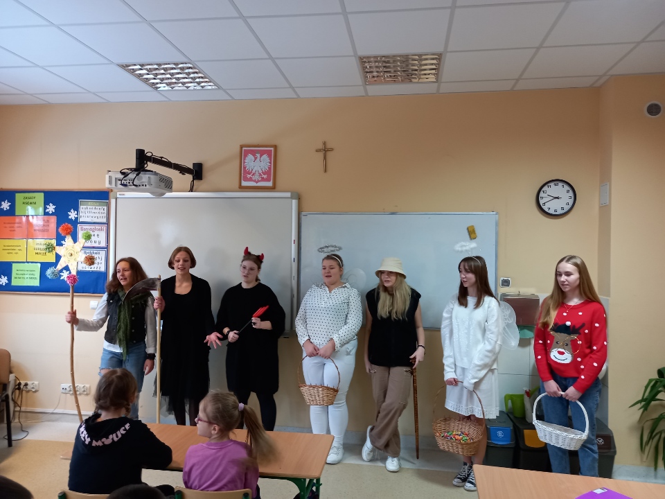 21 grudnia 2022 w naszej szkole odbyło się kolędowanie połączone z dniem dobrego słowa. Kolędnicy z klasy ósmej wprowadzili wszystkich w przyjemny, świąteczny klimat. Każdy uczestnik otrzymał karteczkę z dobrym słowem oraz małą słodkość. Dziękujemy za koordynację wydarzenia pani Edycie Żydlewskiej, pani Aleksandrze Budnej oraz pani Annie Dobosz.