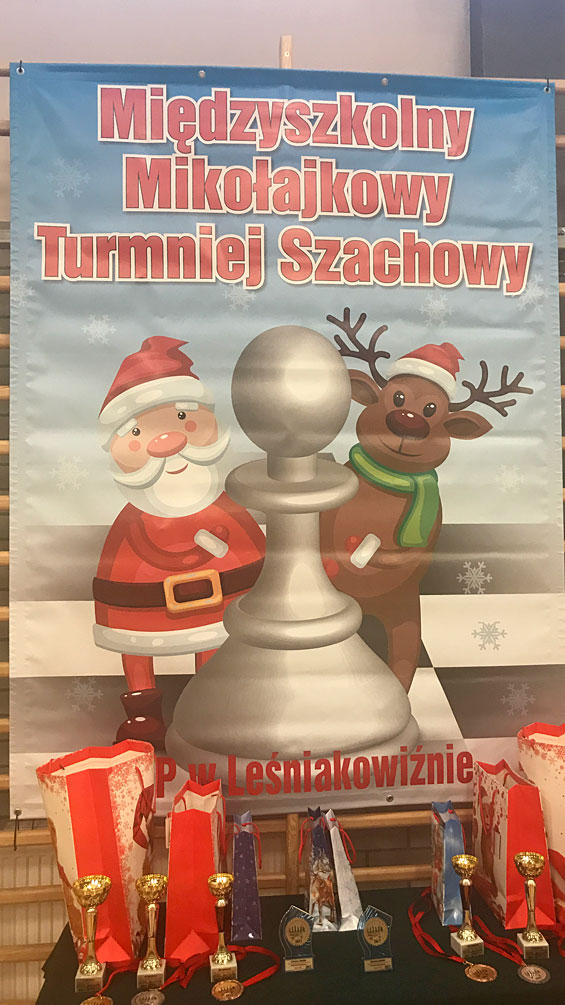 Do V Mikołajkowego Międzyszkolnego Turnieju Szachowego w Zespole Szkolno-Przedszkolnym w Leśniakowiźnie przystąpiło 62 pasjonatów królewskiej gry, która rozwija intelekt oraz zdolności matematyczno-logiczne.
