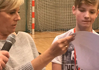 Najlepsi zawodnicy otrzymali z rąk Dyrektora Zespołu Szkolno-Przedszkolnego w Leśniakowiźnie, p. Małgorzaty Kokocińskiej dyplomy, puchary i medale.