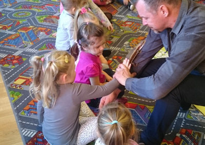29 października i 6 listopada 2018r. w naszym przedszkolu powitaliśmy nietypowych gości. Nasze przedszkolaki miały okazję poznać wicia, jaszczurkę, papugę, ślimaka, świerszcze, żółwie i kilka innych ciekawych osobliwości. Zajęcia zaowocowały ogromnym zainteresowaniem wśród dzieci. Każdy miał okazję usłyszeć kilka ciekawostek z życia każdego z tych zwierząt, poznać ich sposób bycia i co najprzyjemniejsze… dotknąć i potrzymać.