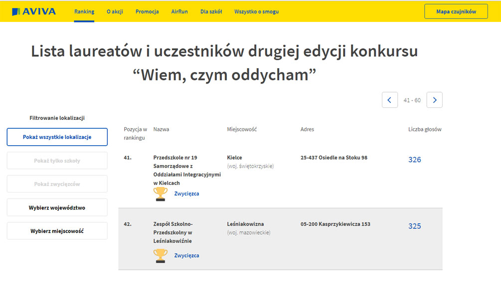 Oddaliśmy łącznie 325 głosów, zajęliśmy 42 miejsce w Polsce na prawie 2,5 tys. zgłoszonych lokalizacji.