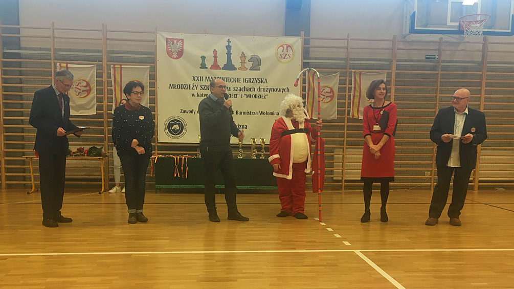 Dyplomy, medale i statuetki wręczali Zastępca Burmistrza Wołomina p. Dariusz Szymanowski, Wiceprzewodnicząca SZS Warszawy i Województwa Mazowieckiego p. Iwona Zielińska – Mróz, Dyrektor Szkoły p. Ewa Świderska, przedstawiciel PSZS p. Mieczysław Rosłan, Sędzia Główny p. Andrzej Szewczak.
