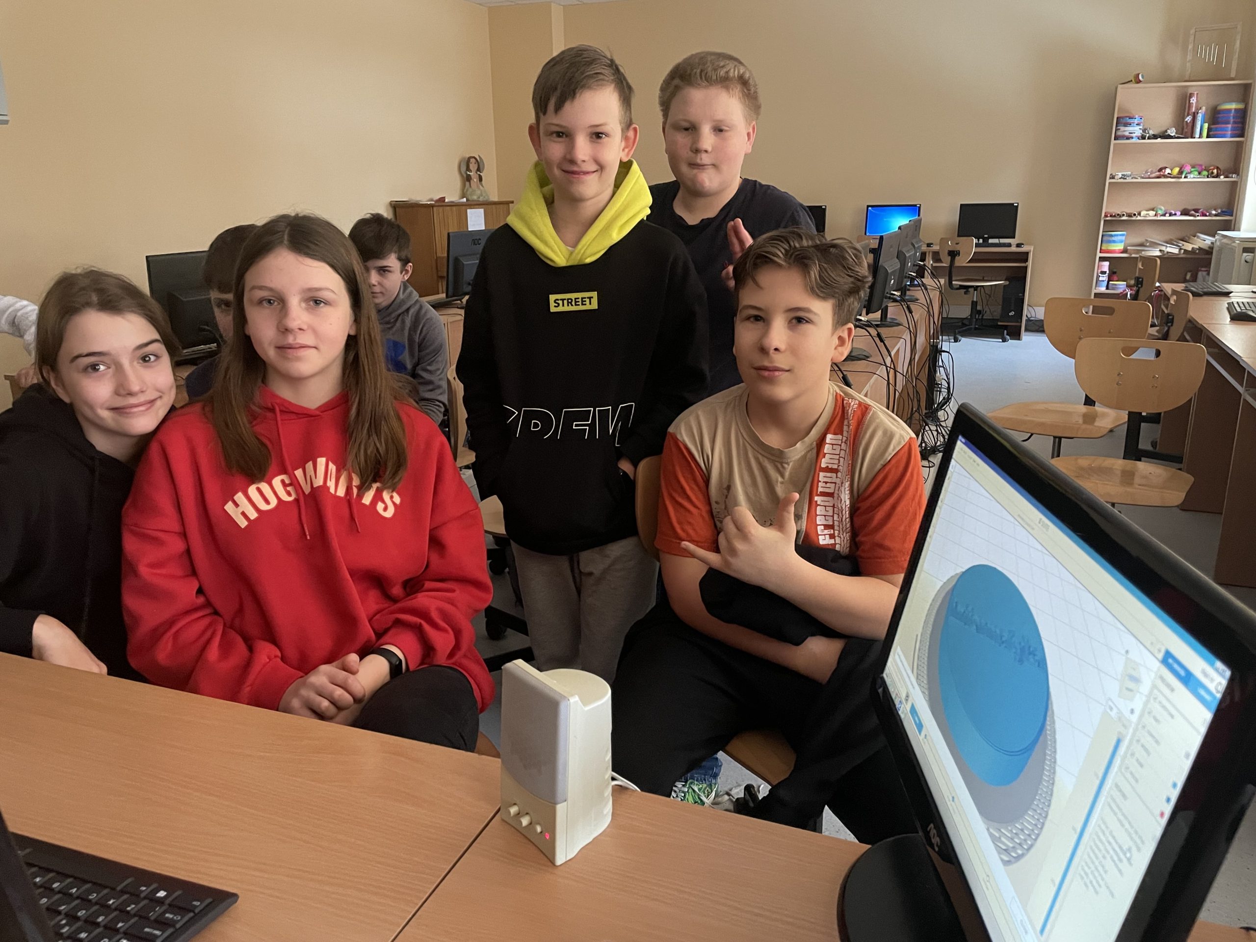 Dnia 30 stycznia 2023, podczas zajęć informatyki, klasa VII miała okazję zapoznać się z tworzeniem projektu 3D, a następnie przerabianiem go i dostosowywaniem do wydruku.