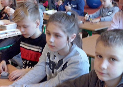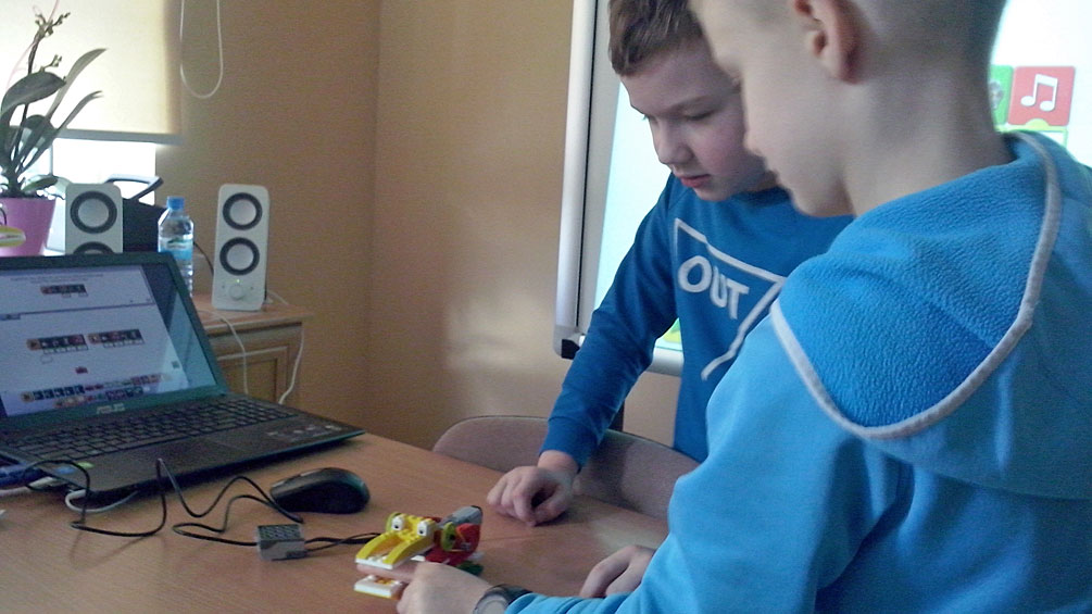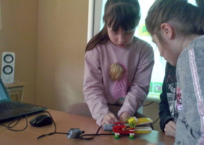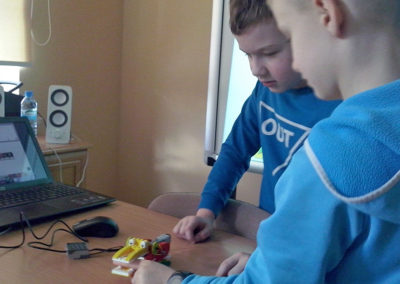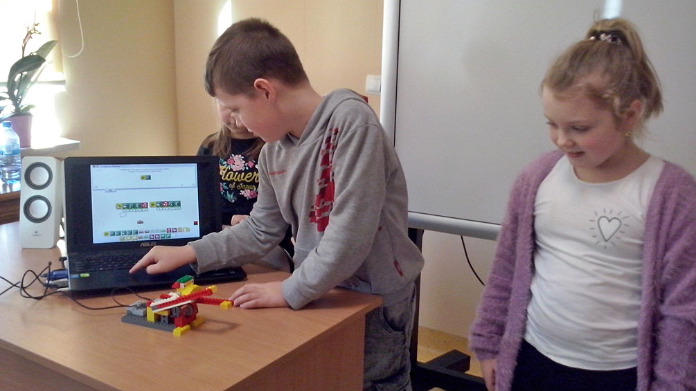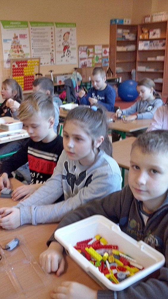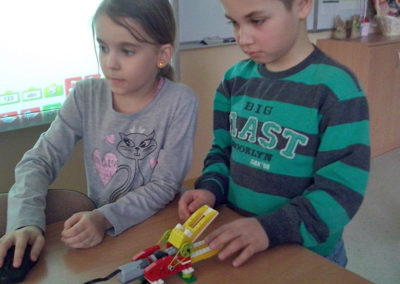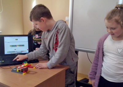 „Legoroboty” są wprowadzeniem uczniów w wesoły świat robotów. Zajęcia z uczniami klasy II prowadzi p. Ewa Świderska. Udział w zajęciach „Legoroboty” prowadzonych z użyciem zestawów LEGO WeDo jest dla uczniów pierwszym krokiem poczynionym na drodze do fascynacji techniką i informatyką. Dzieci budują roboty, korzystając z instrukcji Lego pokazujących krok po kroku, jakie klocki należy wziąć i jak je ze sobą połączyć. Po zbudowaniu robotów, uczniowie programują je w specjalnie przygotowanym programie. Program posiada przyjazny interfejs graficzny, w którym dzieci przeciągają i upuszczają poszczególne ikony odpowiedzialne za określone czynności robota. Ostatnim i najciekawszym elementem zajęć jest testowanie robota i zabawa. To bardzo ważny element, który pozwala poczuć satysfakcję z efektów swojej pracy, ucząc wytrwałości w osiąganiu zamierzonych celów.